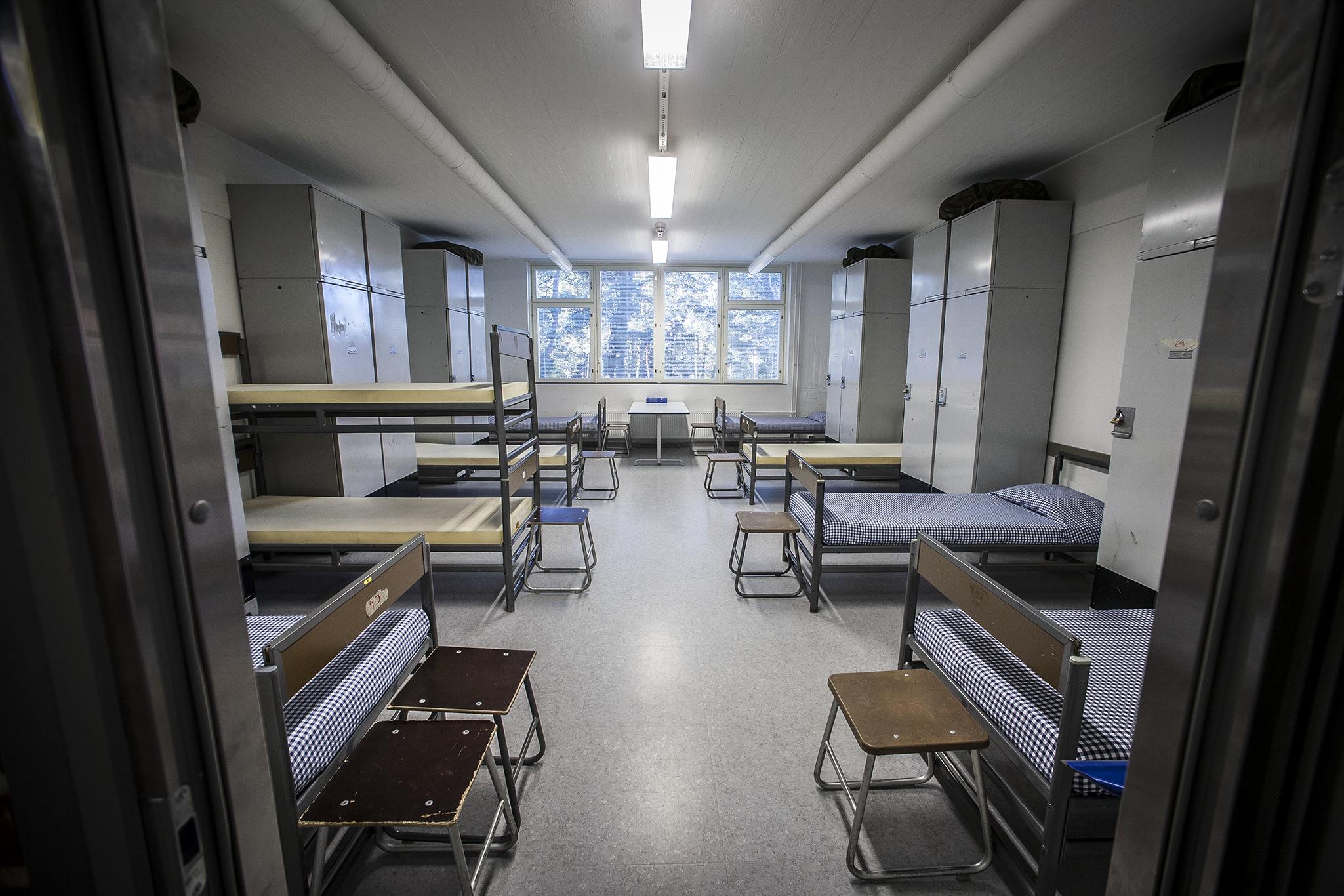 Varusvaraston seinällä on kalenteri, jossa jokaisen kuluneen päivän ylle on vedetty huolellisesti suuri rasti. Suurissa rullakoissa on sadoittain siististi niputettuja sukkapareja ja seinillä ”Päältä ei vaihdeta” -lappuja. Mikään pitkän ja matalan rakennuksen sisällä ei viittaa siihen, että eläisimme vuotta 2015. Kuvittelen, että täällä on näyttänyt samalta kymmenen, kaksikymmentä ja kolmekymmentä vuotta sitten.